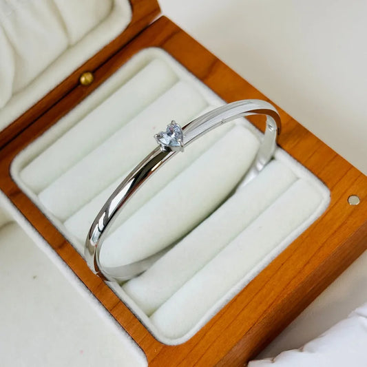 Streetwear Heart Shape 304 Stainless Steel Zircon Bangle In Bulk Stainless Steel Bracelets