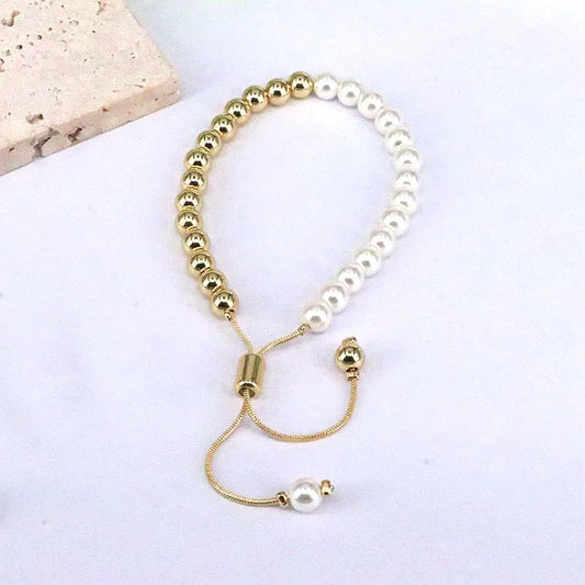 Hip-Hop Vintage Style Solid Color Stainless Steel 18K Gold Plated Freshwater Pearl Bracelets In Bulk