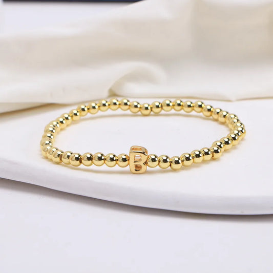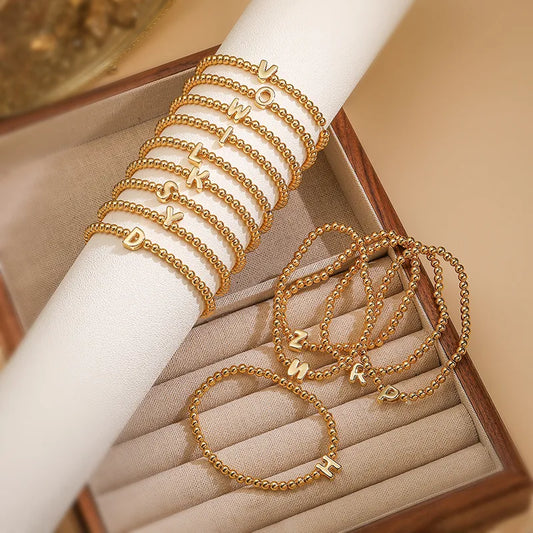 Wholesale Jewelry Simple Style Letter Copper 18K Gold Plated Bracelets ball chain