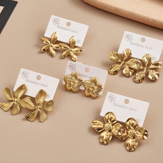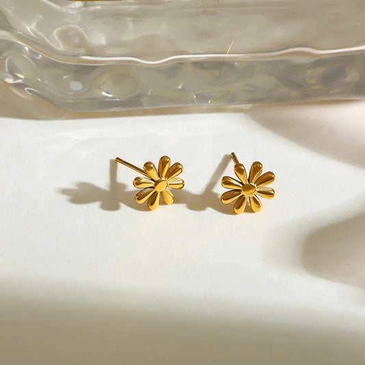Geometric Floral Stainless Steel 18K Gold Plated Small Earrings Fashionable Cute Polished Finish For Indoor Birthday Party Date Selfie Festival