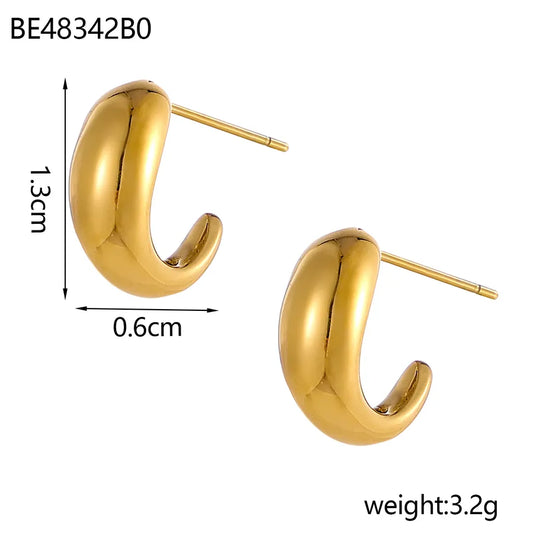 Elegant Geometric Hollow C-Shape Hoop Earrings Stainless Steel Vintage Feel Style Women's Fashion Jewelry