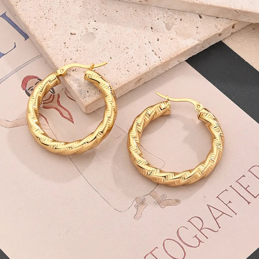 1 Pair IG Style Spiral Stripe Plating 304 Stainless Steel 18K Gold Plated Earrings Ear Studs
