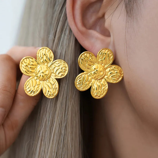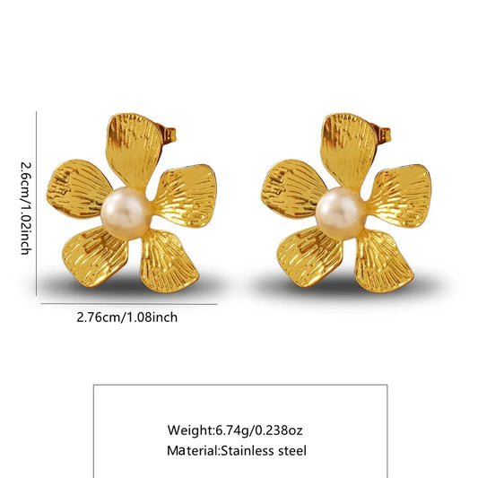 1 Pair Sweet Flower 304 Stainless Steel Imitation Gold Ear Studs