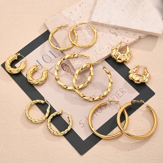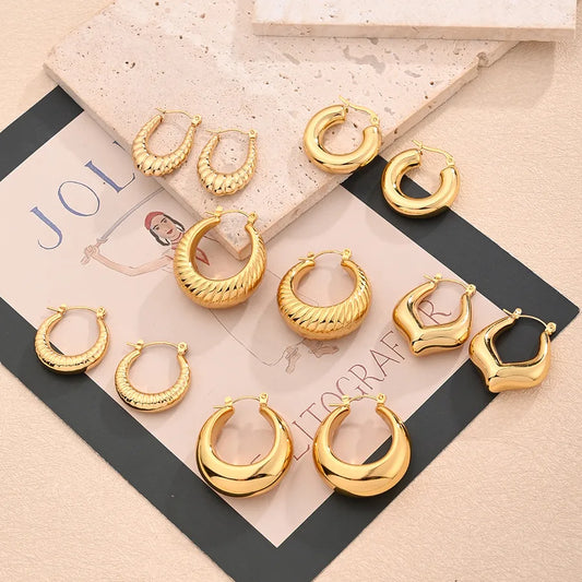 Fashion Printing Plating 304 Stainless Steel No Inlaid 18K Gold Plated Earrings