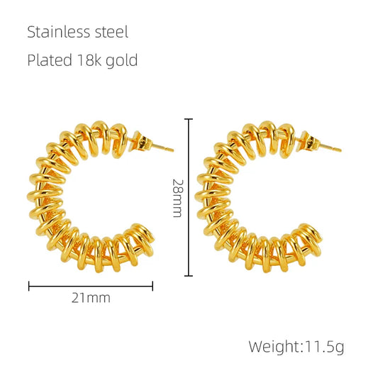 1 Pair Retro C Shape Plating 304 Stainless Steel 18K Gold Plated Ear Studs
