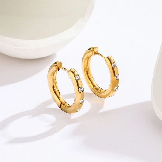 1 Pair Elegant Round Plating Inlay Titanium Steel Diamond 18K Gold Plated Earrings