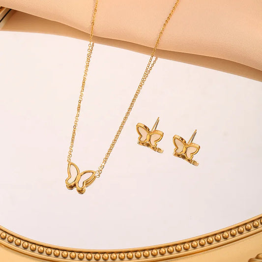 Wholesale Jewelry Sweet Artistic Butterfly Titanium Steel Shell 18K Gold Plated Inlay Jewelry Set