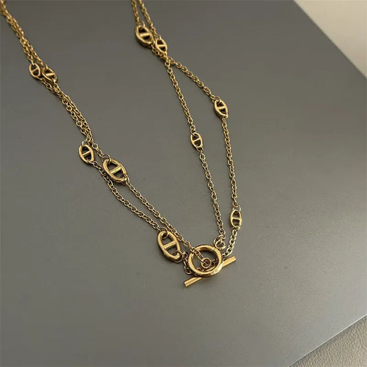 304 Stainless Steel 18K Gold Plated Silver Plated IG Style Vintage Style Patchwork Plating Solid Color Long Necklace