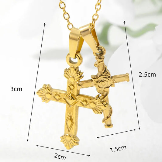 Wholesale Jewelry Casual Vintage Style Human Cross Sun Stainless Steel 18K Gold Plated Plating Pendant Necklace