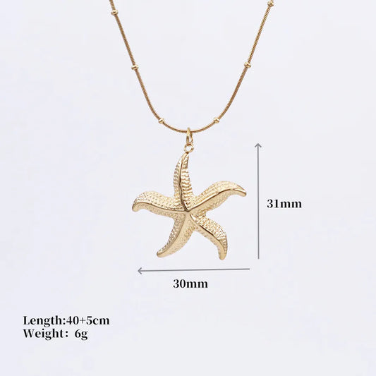 Wholesale Jewelry Marine Style Modern Style Starfish Conch Shell 304 Stainless Steel 18K Gold Plated Plating Pendant Necklace O-shaped chain snake chain