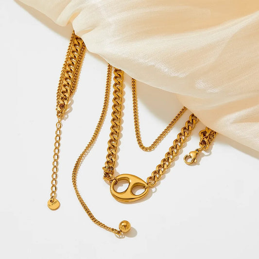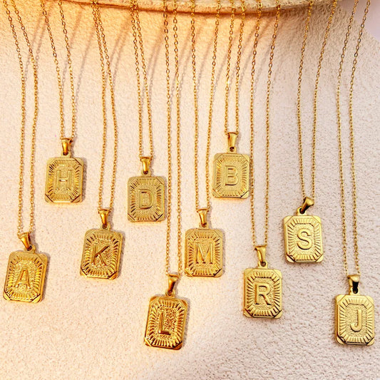 Wholesale Jewelry Vacation Simple Style letter 304 Stainless Steel 18K Gold Plated Plating Pendant Necklace cable chain
