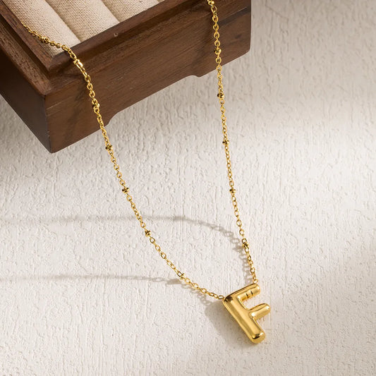 Brass Zircon Balloon Bubble Chubby 26 English Alphabet Necklace