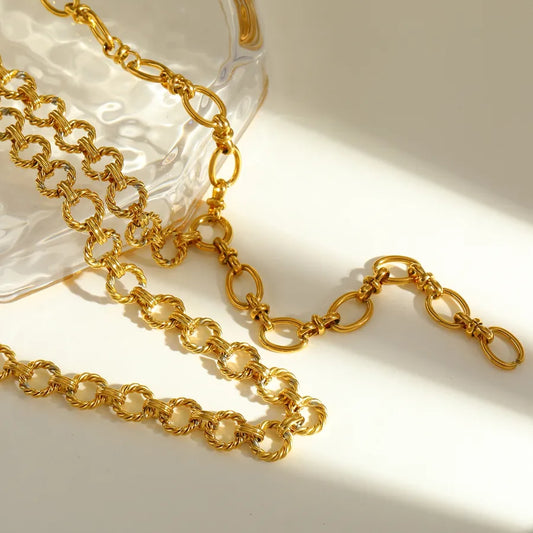 Simple Luxury 18K Gold Plated Stainless Steel Geometric Chain Necklace Women's Classic Style Bracelet For Date And Selfie