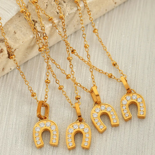 Wholesale Jewelry Elegant Luxurious Commute Lock 304 Stainless Steel 18K Gold Plated Horseshoe Buckle Bracelets Ear Studs Necklace