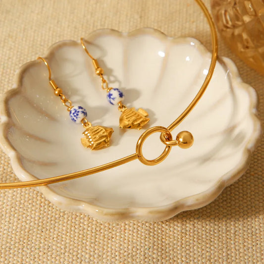 Retro Ins Style Stainless Steel Ceramic Heart Starfish Shell Necklace Titanium Steel Women's Jewelry Daily Wear Gold Plated