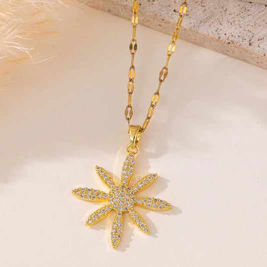 Wholesale Jewelry Elegant Flower 316 Stainless Steel Copper Pendant Necklace cable chain