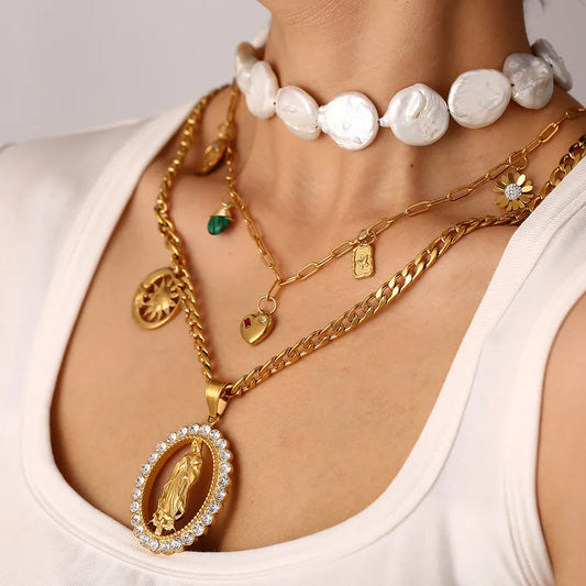 Freshwater Pearl Titanium Steel Sun Oval Heart Shape Necklace