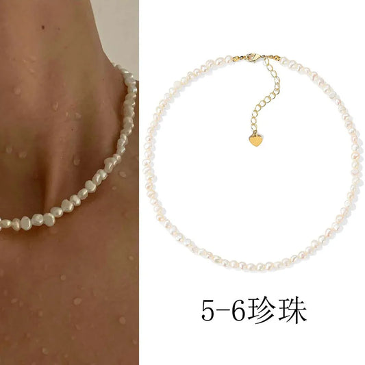 Freshwater Pearl Titanium Steel Beaded Solid Color Necklace