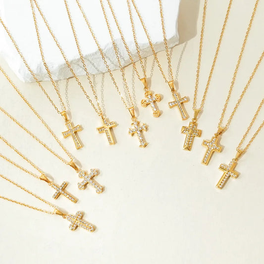Simple Style Shiny Cross 14K Gold Plated Rhinestones 304 Stainless Steel Wholesale Pendant Necklace