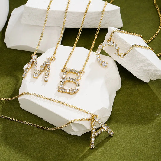 copper jewelry micro inlaid zircon letter full diamond necklace english letter necklace