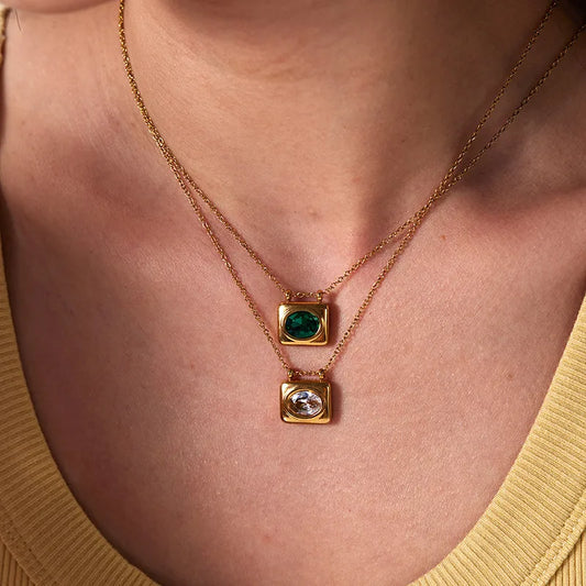 IG Style Simple Style Oval Rectangle 304 Stainless Steel Plating Inlay Zircon 18K Gold Plated Women's Pendant Necklace