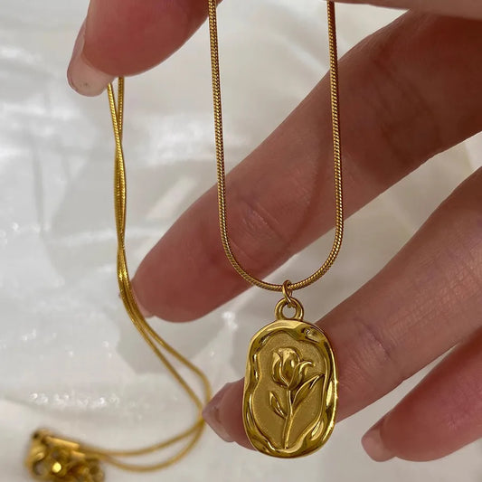 French Style Shiny Rose 304 Stainless Steel 18K Gold Plated Women's Pendant Necklace