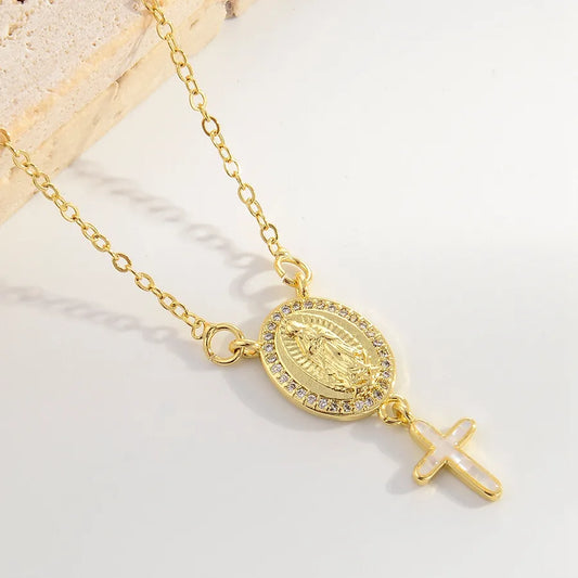 elegant streetwear cross copper 18k gold plated zircon pendant necklace in bulk