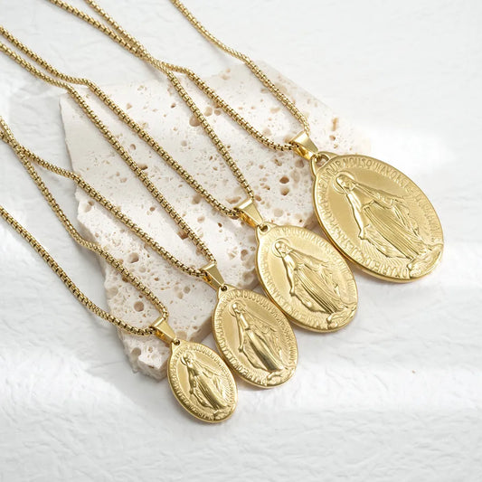 304 Stainless Steel 18K Gold Plated Hip-Hop Simple Style Classic Style Plating Portrait Oval Pendant Necklace