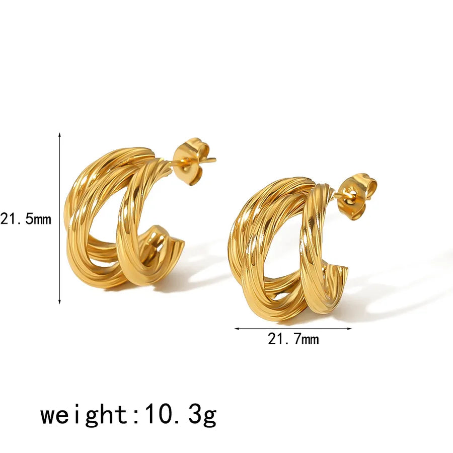 1 par de elegantes pendientes en forma de C chapados en acero inoxidable 304 chapados en oro de 18 quilates