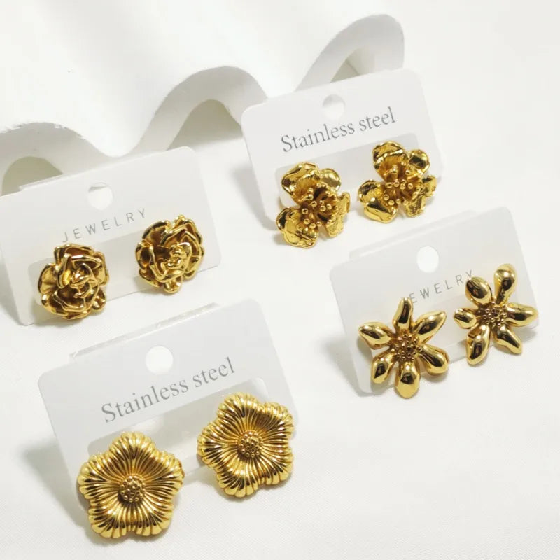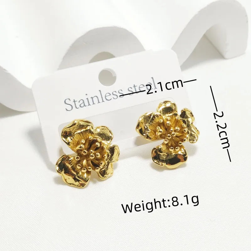 1 par de elegantes pendientes con forma de flor de acero inoxidable 304 chapados en oro de 18 quilates con cierre de mariposa