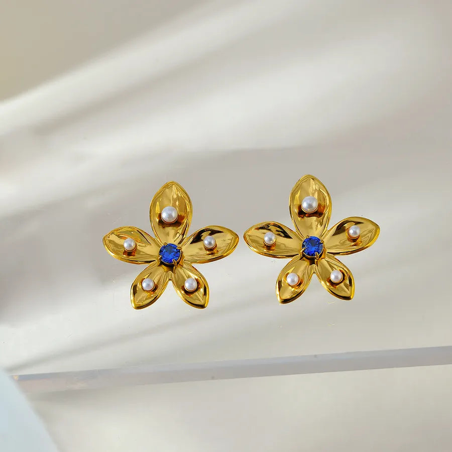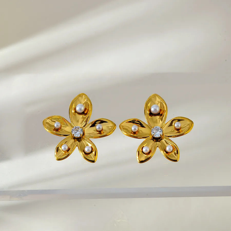 1 par de elegantes pendientes de acero inoxidable 304 con forma de flor
