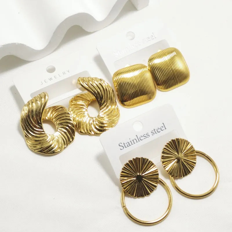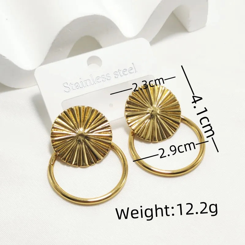 1 par de elegantes y lujosos pendientes redondos cuadrados de acero inoxidable 304 chapados en oro de 18 quilates con cierre de mariposa