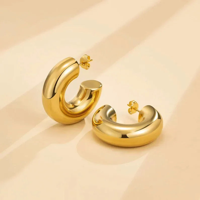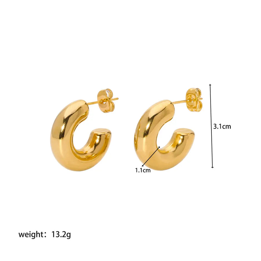 1 par de pendientes estilo nórdico estilo francés en forma de C chapados en acero inoxidable 304 chapados en oro de 18 quilates