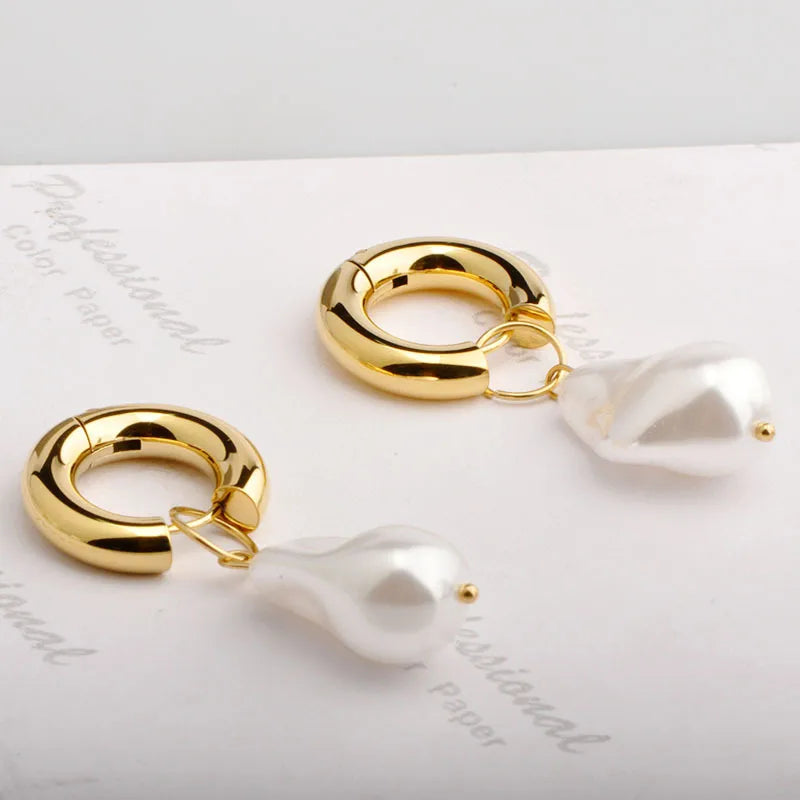 1 par de pendientes colgantes de acero de titanio chapados en oro de 18 quilates con perlas barrocas y baño irregular de estilo simple