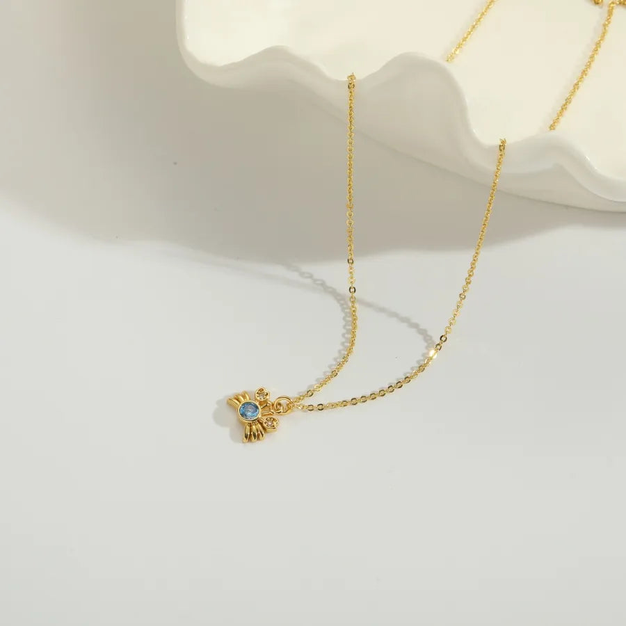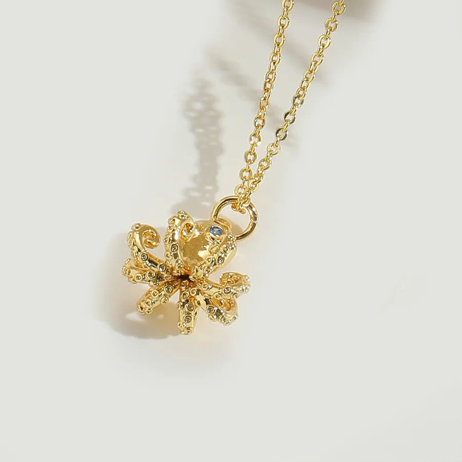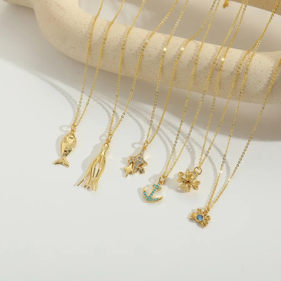 Unique Zirconia Octopus Crab Fish Jellyfish Small Pendant Necklace Compact Size Geometric Pattern 14K Gold Plated Copper Chain