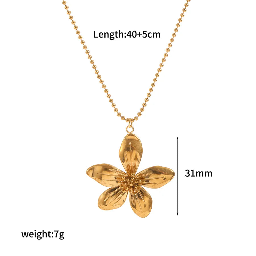 Wholesale Jewelry Vintage Style Flower 304 Stainless Steel 18K Gold Plated Charms Earrings Necklace O-shaped chain