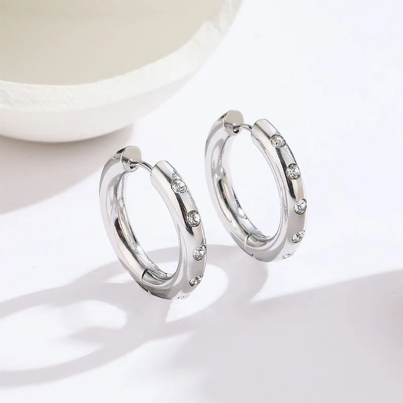 1 Pair Elegant Round Plating Inlay Titanium Steel Diamond 18K Gold Plated Earrings