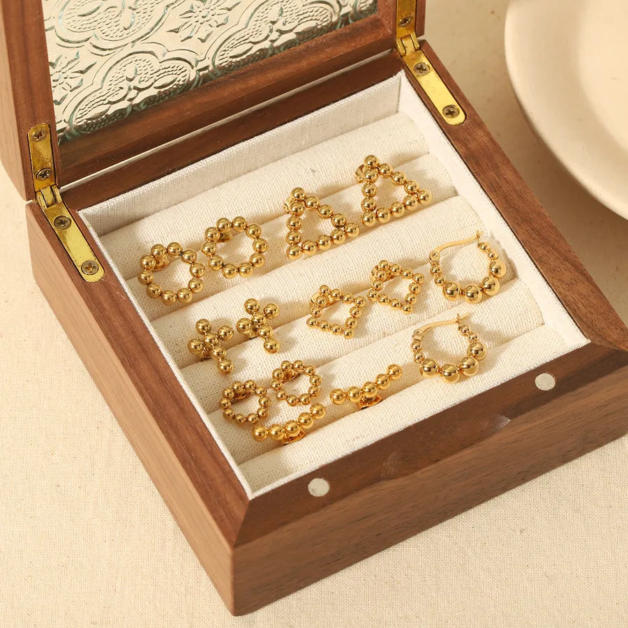 1 Pair Retro Quadrilateral Round Heart Shape Polishing Plating 304 Stainless Steel Earrings
