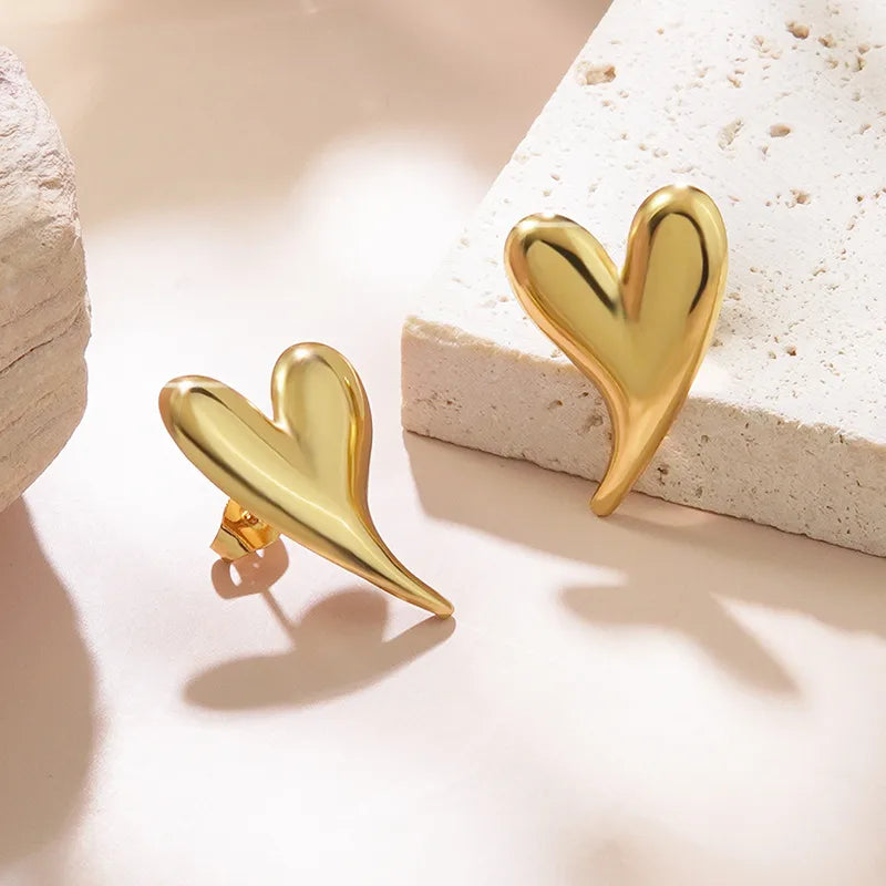 1 Pair Vacation Simple Style Heart Shape Plating 304 Stainless Steel Ear Studs