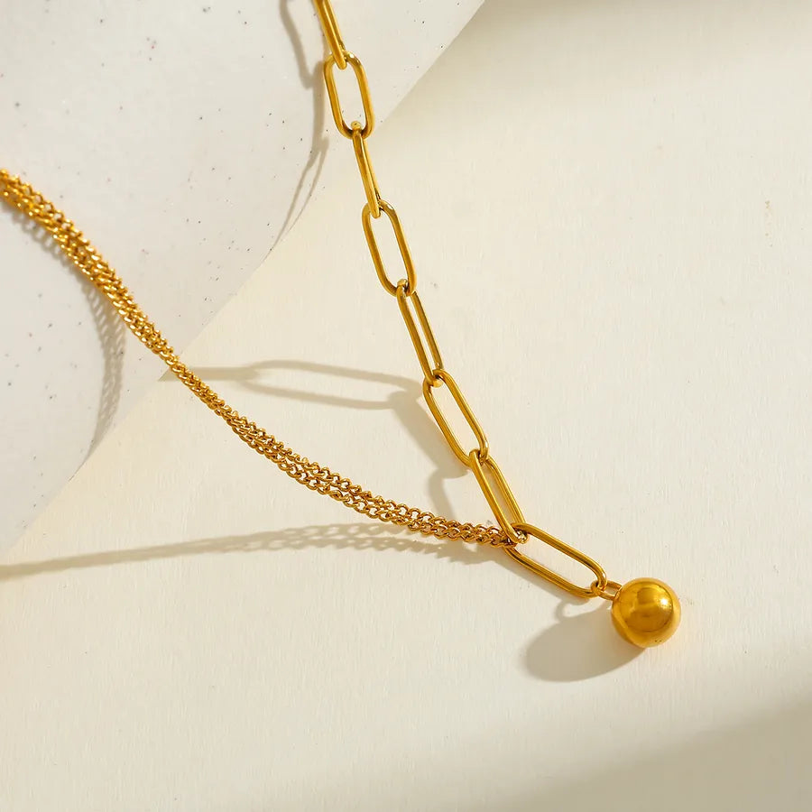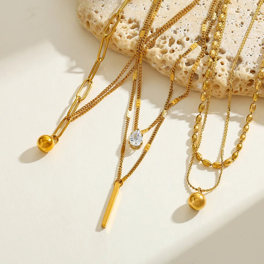 18K Gold Plated Stainless Steel Zirconia Embedded Geometric Waterdrop Pendant Necklace Elegant Cute Retro Simple Art Style