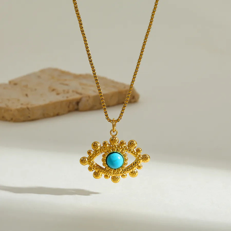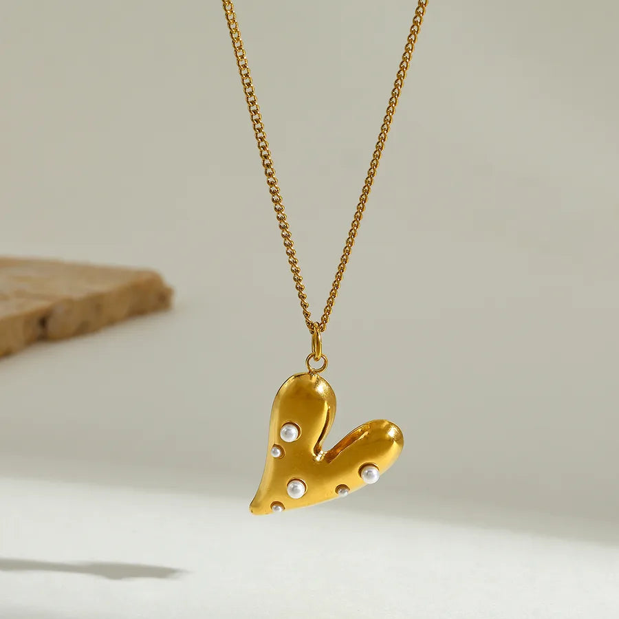 18K Gold Plated Stainless Steel Zirconia Simulated Pearl Cross Eye Heart Pendant Necklace Women's Fashion Jewelry Accessory