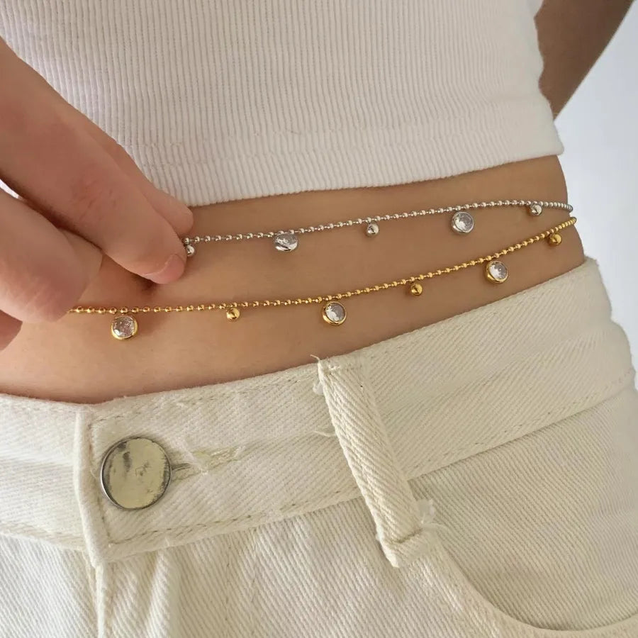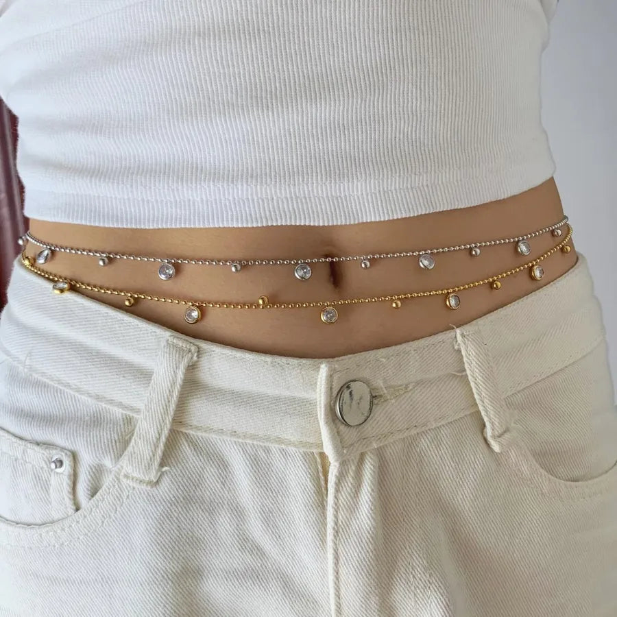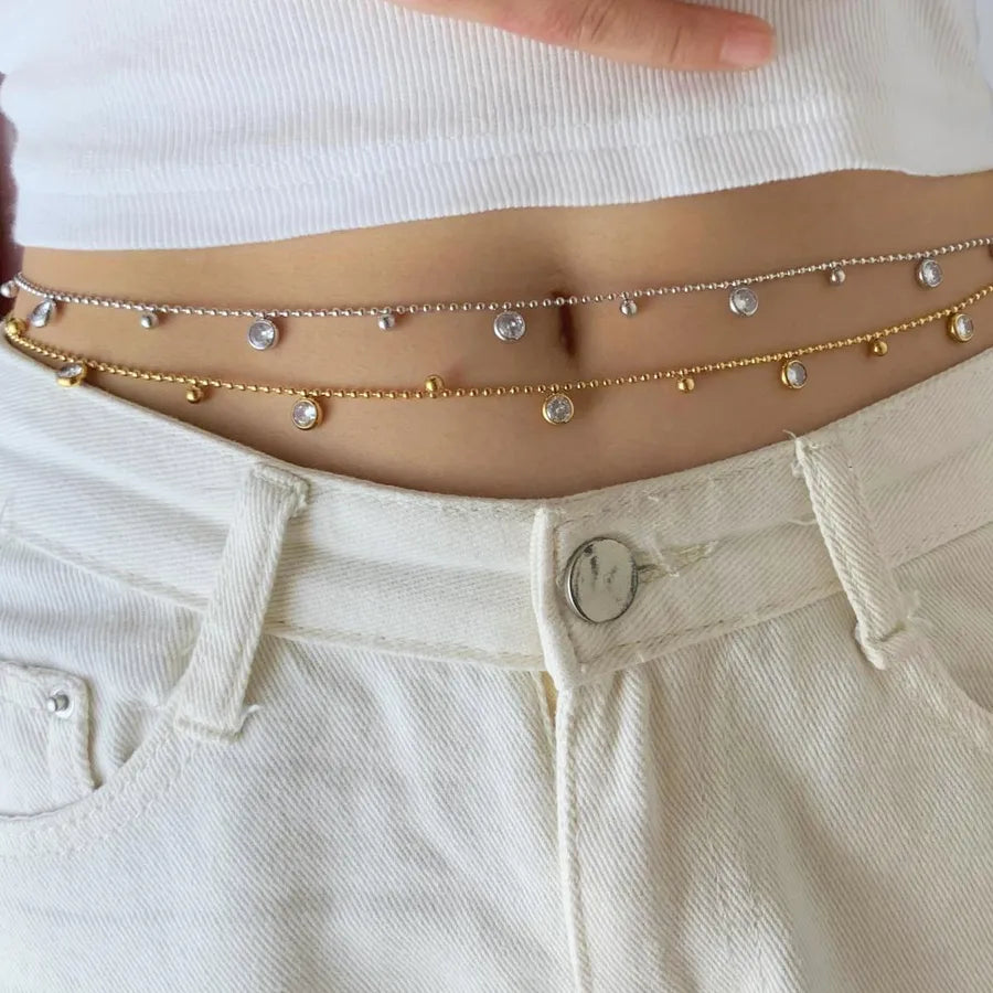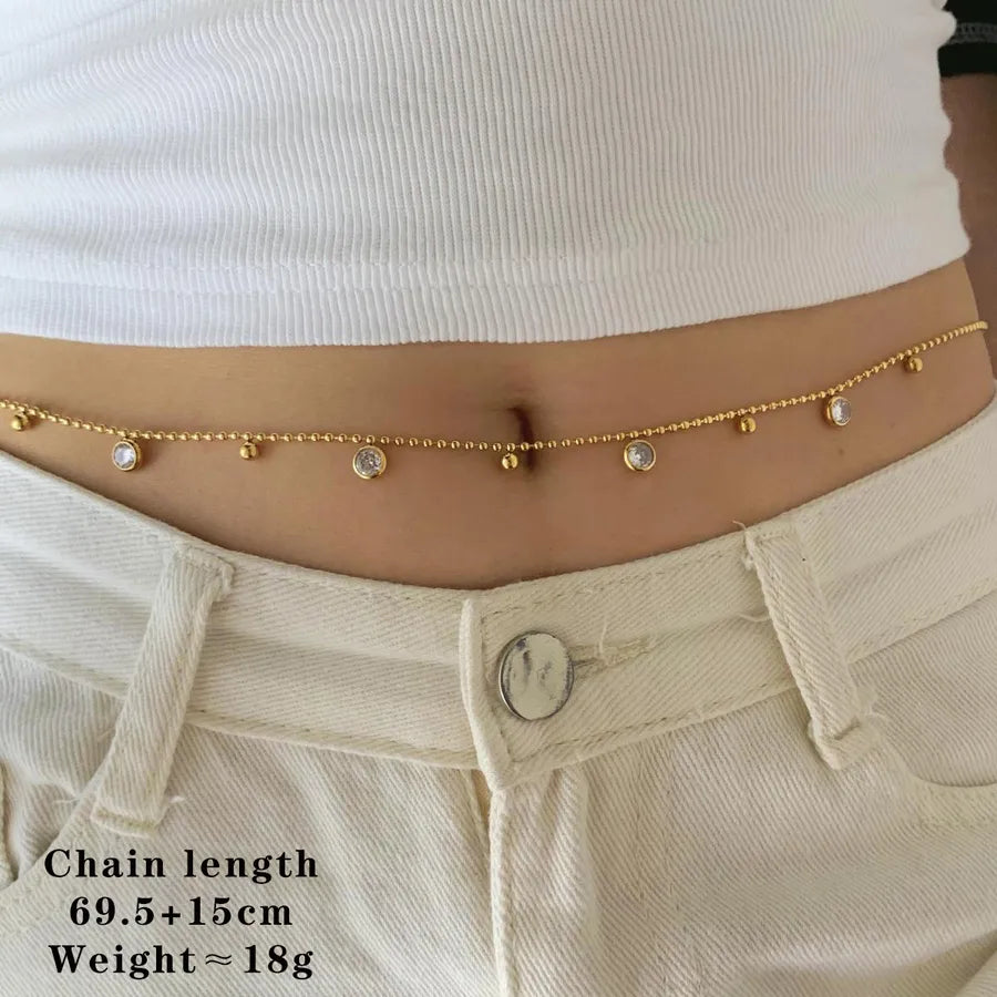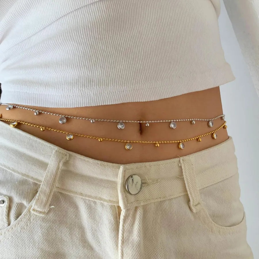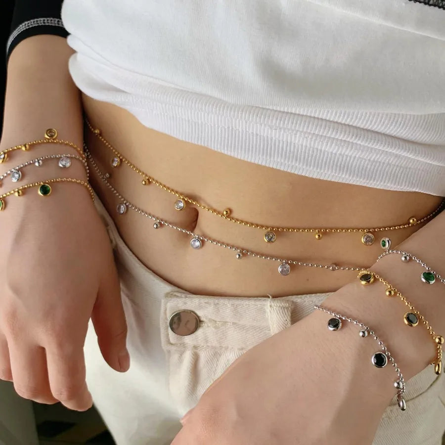 304 Stainless Steel 16K Gold Plated White Gold Plated Gold Plated Lady Vacation Streetwear Inlay Geometric Zircon Bracelets Waist Chain Necklace