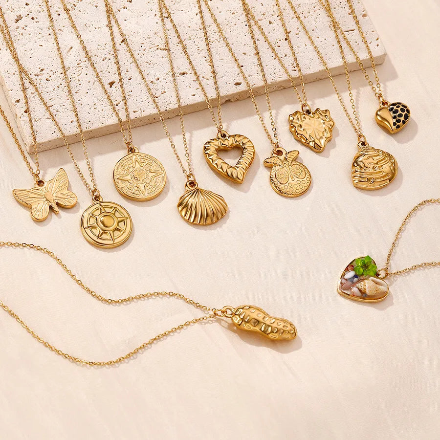 304 Stainless Steel 18K Gold Plated Hawaiian Vacation Tropical Plating Animal Heart Shape Shell Pendant Necklace