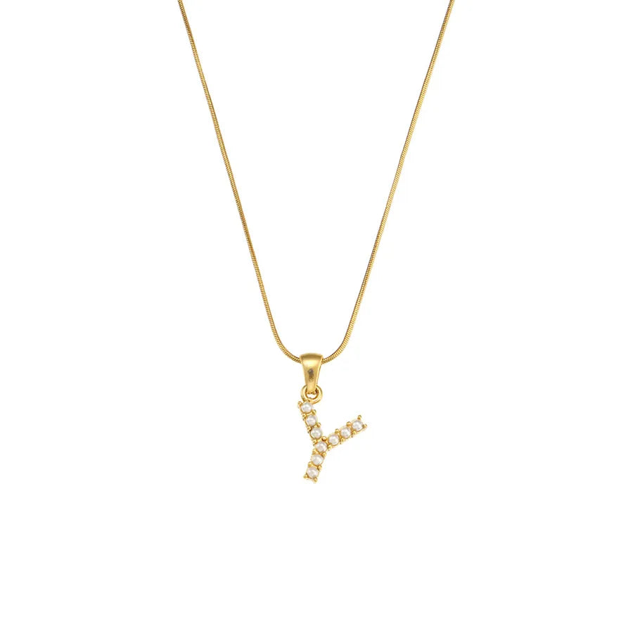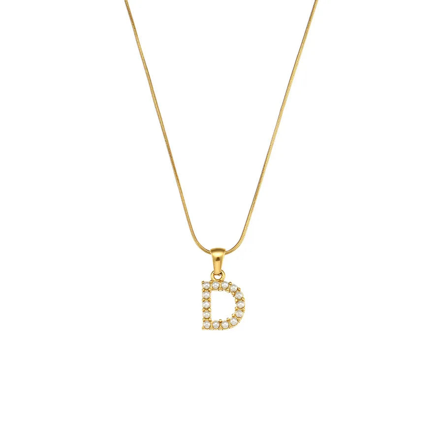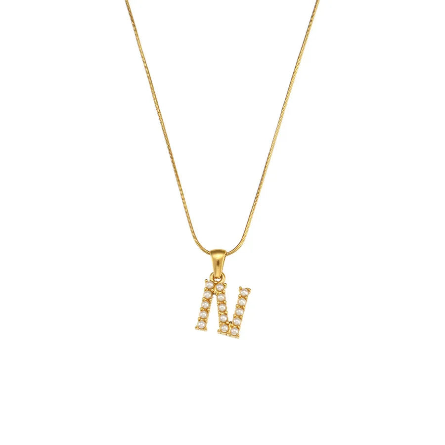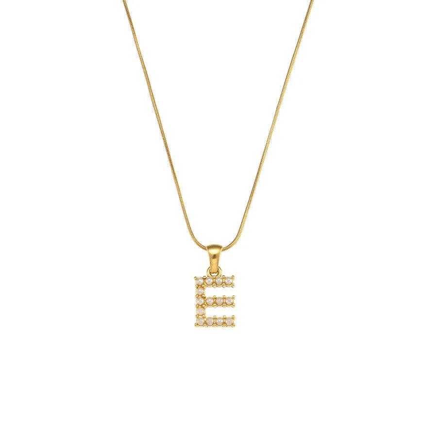 304 Stainless Steel 18K Gold Plated Simple Style Plating Inlaid Pearls Letter Pearl Necklace
