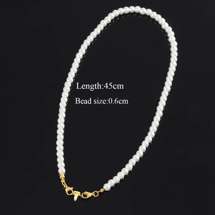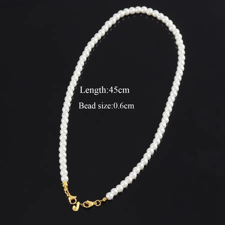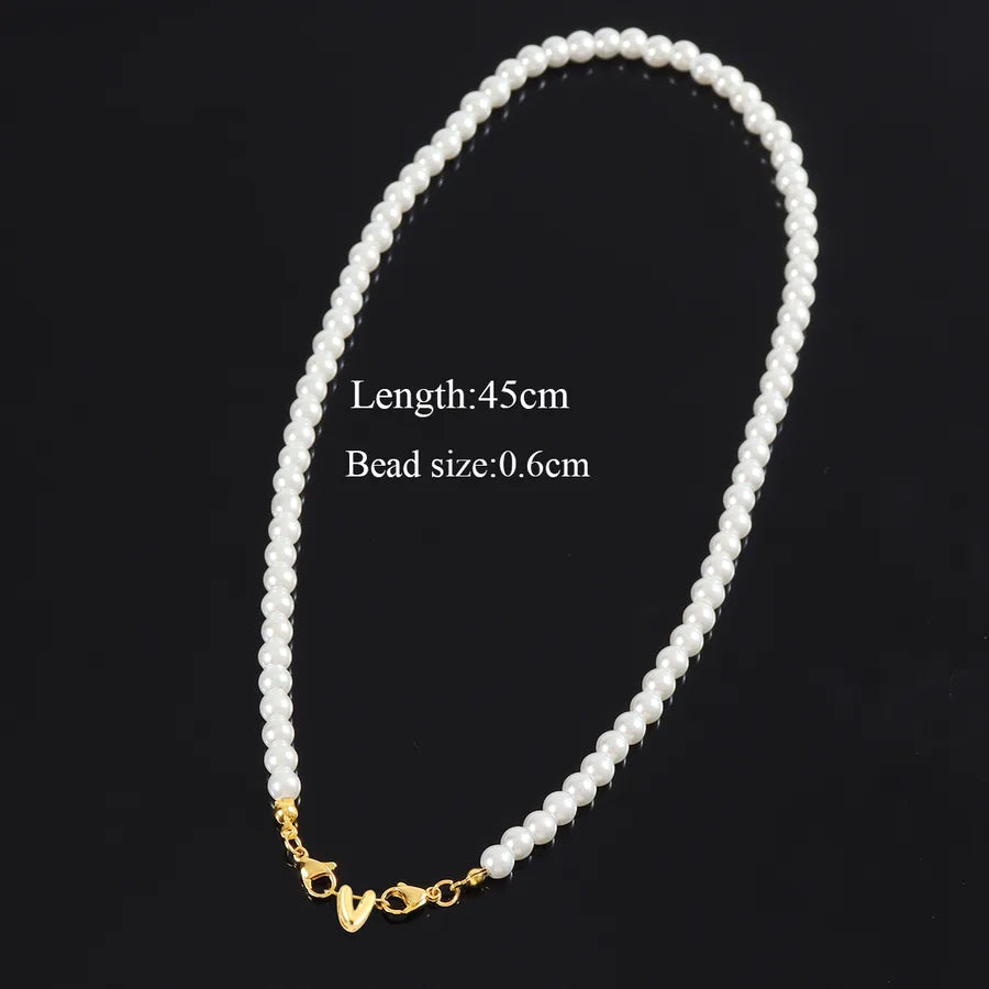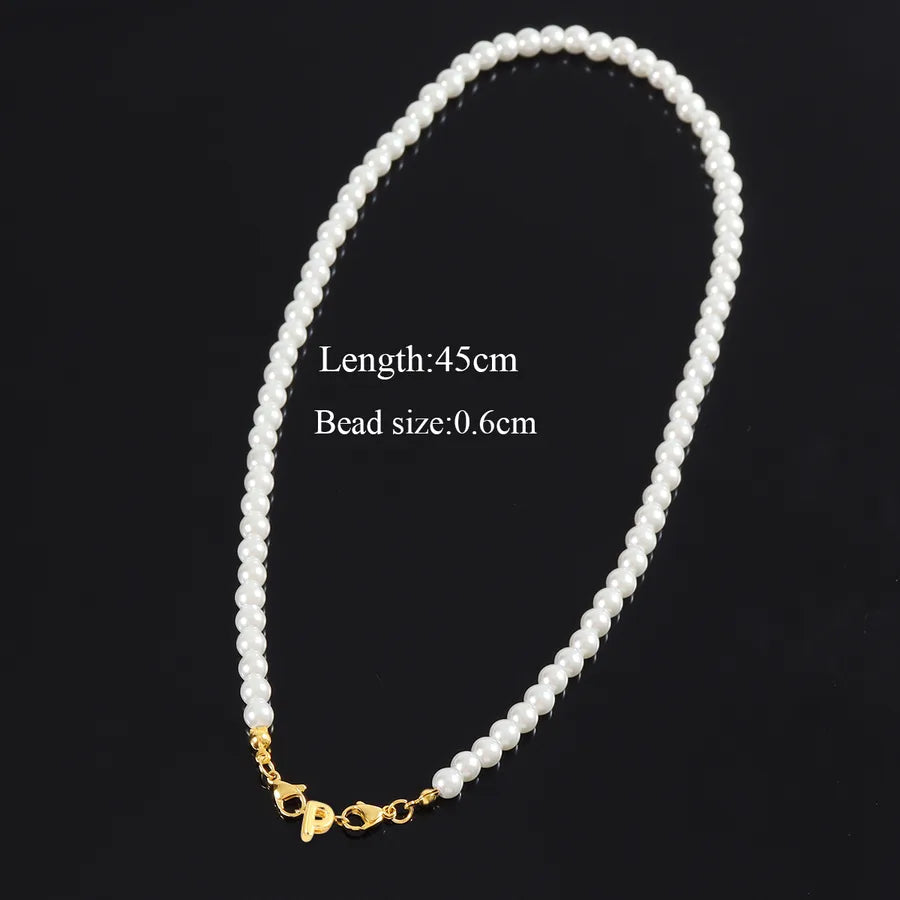 304 Stainless Steel Artificial Pearl Beaded Chain Letter Pendant Necklace