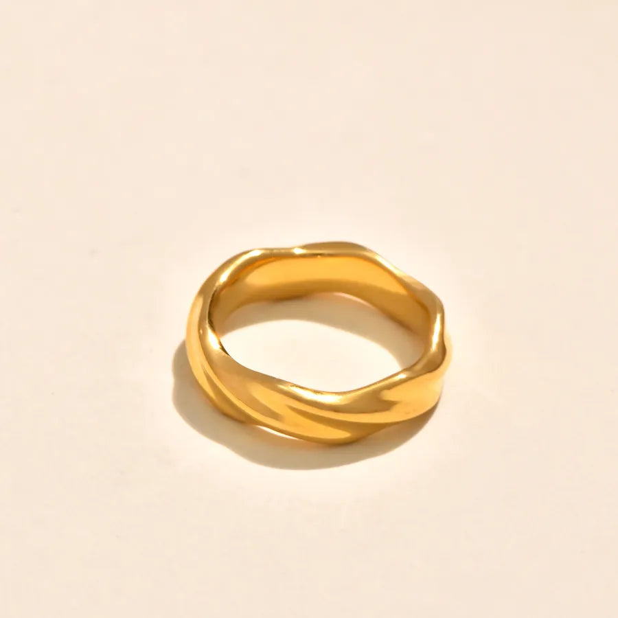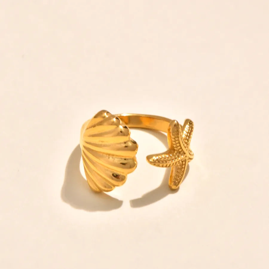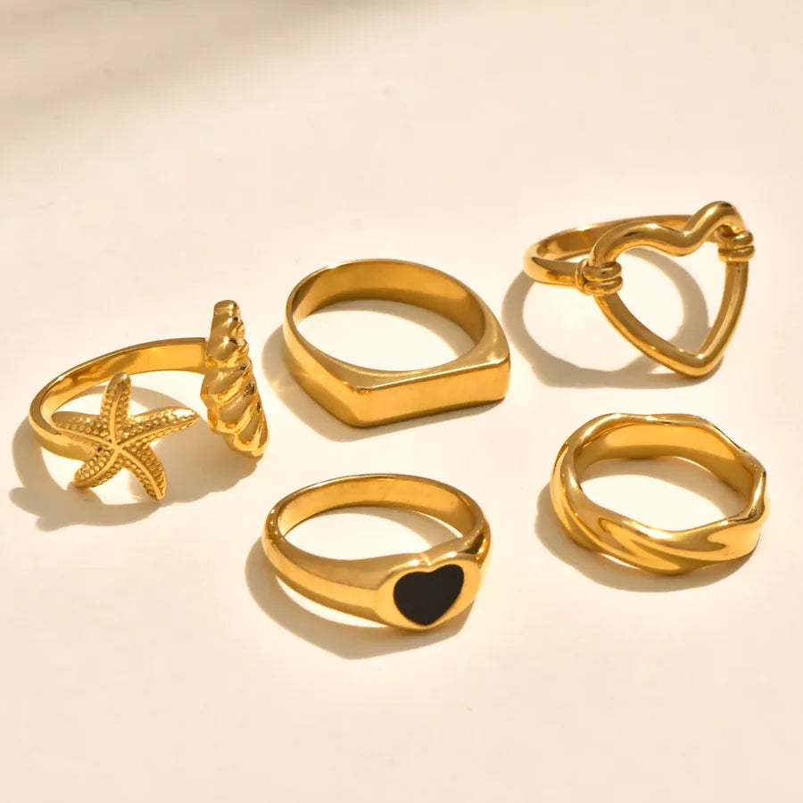 Black Heart Shaped Titanium Steel Ring Gold Plated Shell Starfish Vintage Shell Bead Ring Simple Personality Weekend Travel Daily Date Holiday