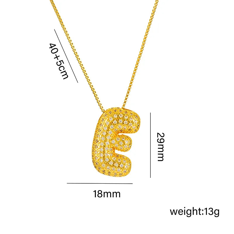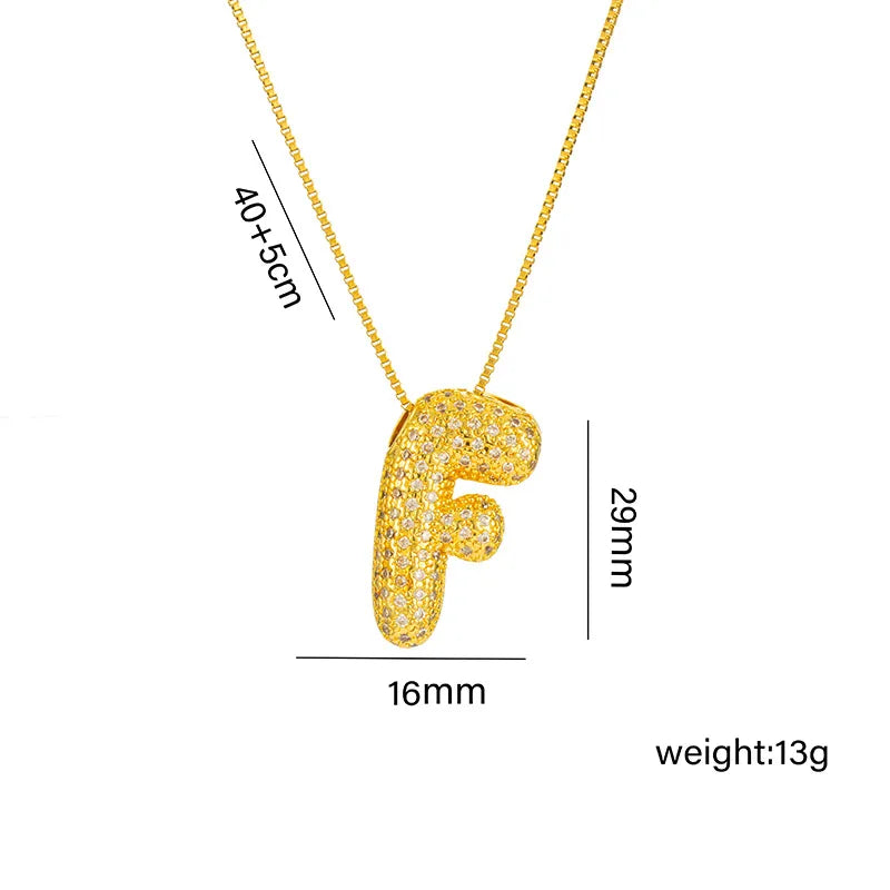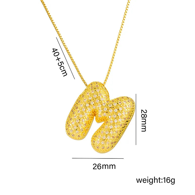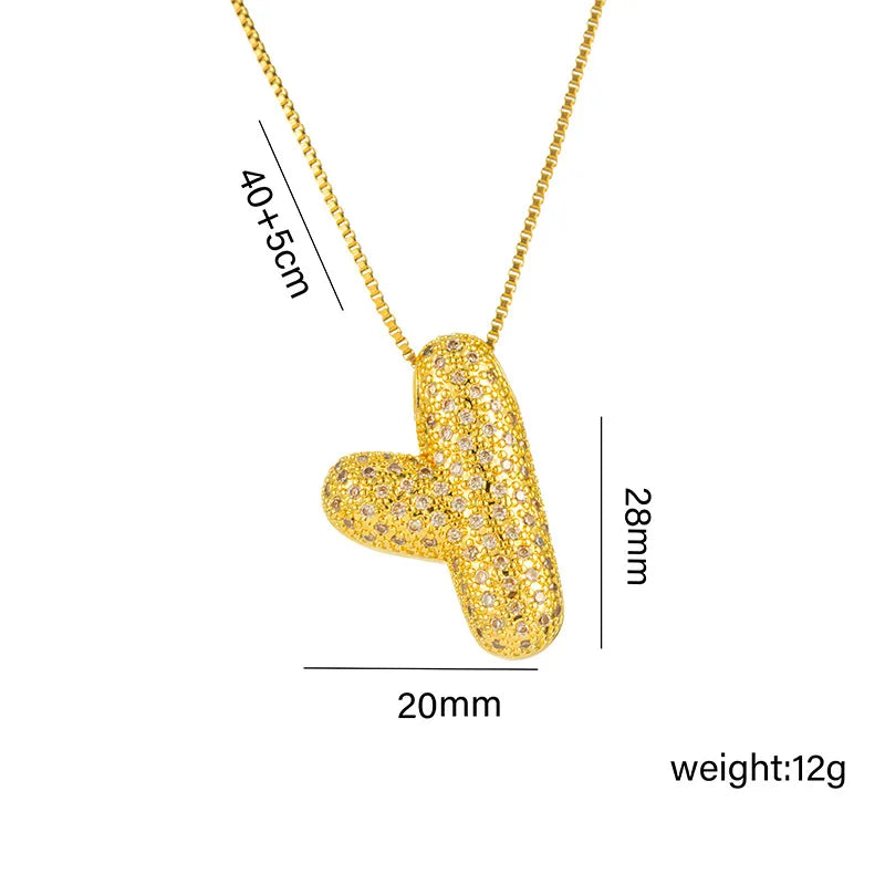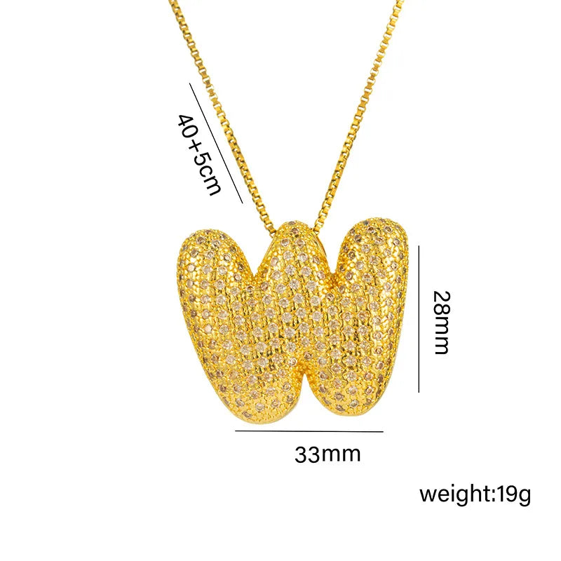 Brass Zircon Balloon Bubble Chubby 26 English Alphabet Necklace