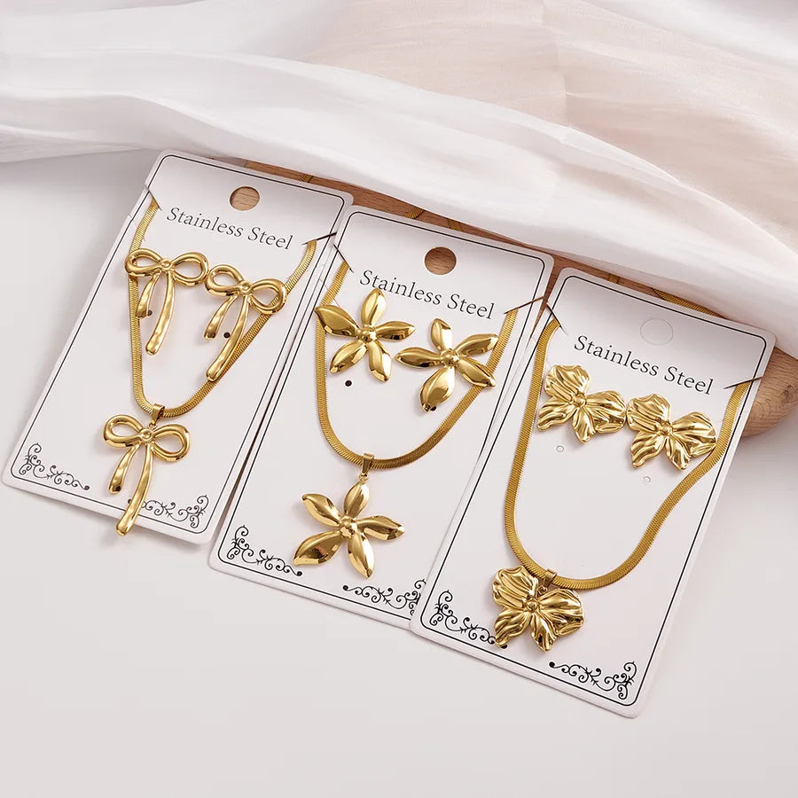 Butterfly Knot Flower Earrings Necklace Set 304 Stainless Steel Electroplated Jewelry Set Casual Holiday Modern Style For Women