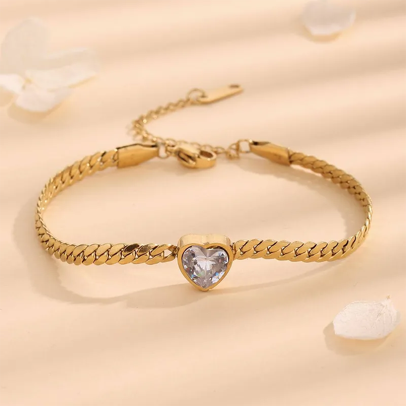 Casual Elegant Simple Style Heart Shape Titanium Steel 18K Gold Plated Rhinestones Bracelets In Bulk