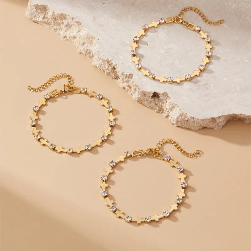 Classic Style Cross Devil's Eye 304 Stainless Steel 18K Gold Plated Zircon Bracelets In Bulk